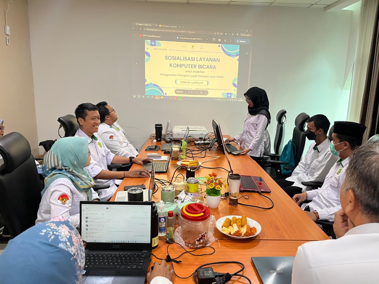 Jakarta, Senin 22 September 2025 – Sebuah perpustakaan pada hakikatnya harus menjadi ruang literasi yang inklusif, terbuka, dan ramah bagi semua kalangan, termasuk penyandang disabilitas. Semangat inilah yang mendorong Perpustakaan Badan Moderasi Beragama dan Pengembangan Sumber Daya Manusia (BMBPSDM) Kementerian Agama RI untuk meluncurkan layanan baru “Komputer Bicara untuk Disabilitas”. Layanan ini diperkenalkan melalui kegiatan sosialisasi yang berlangsung pada Senin, 22 September 2025, di ruang rapat Perpustakaan BMBPSDM.